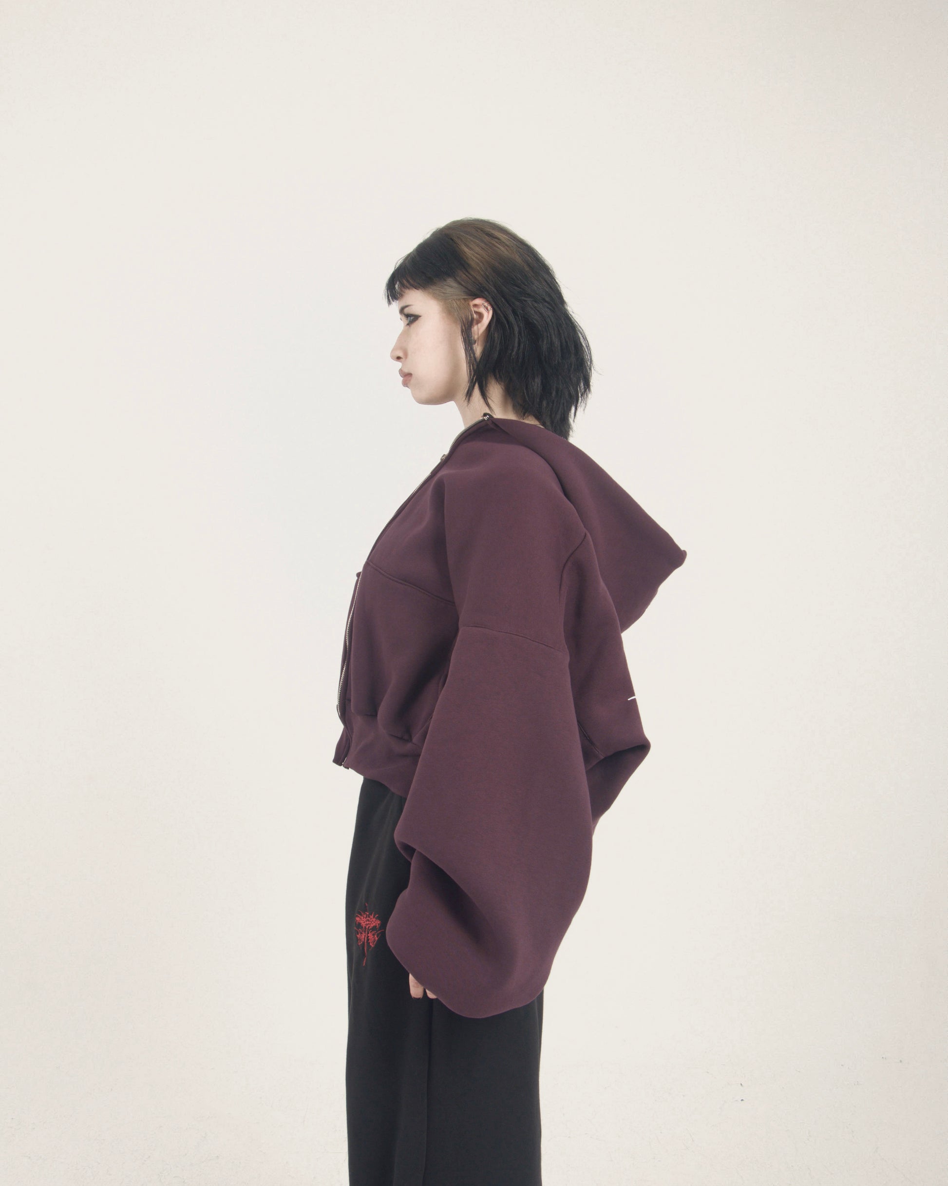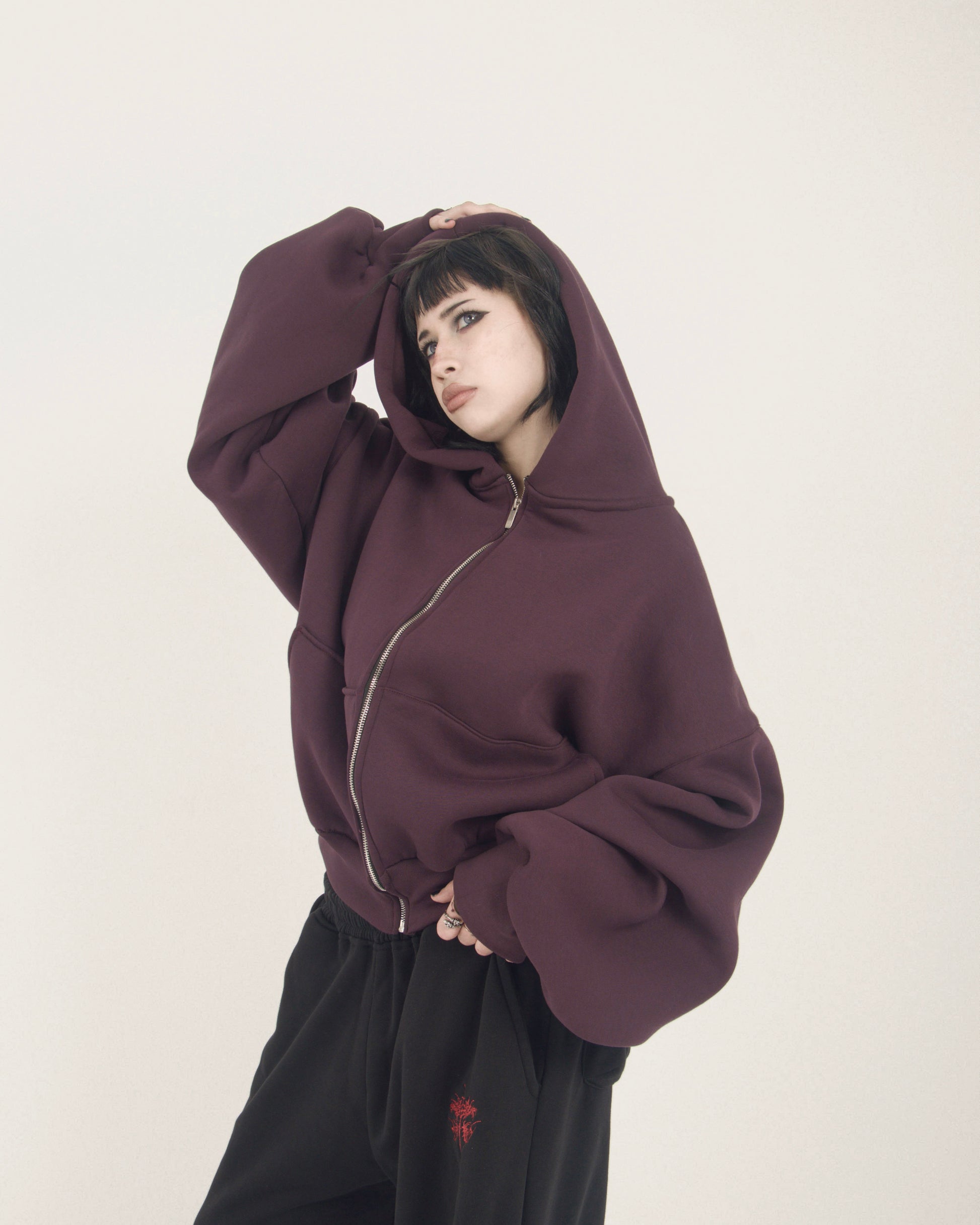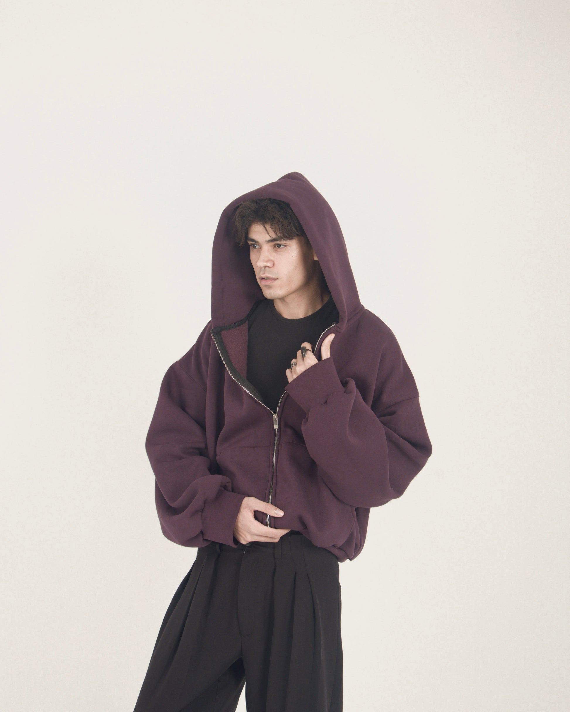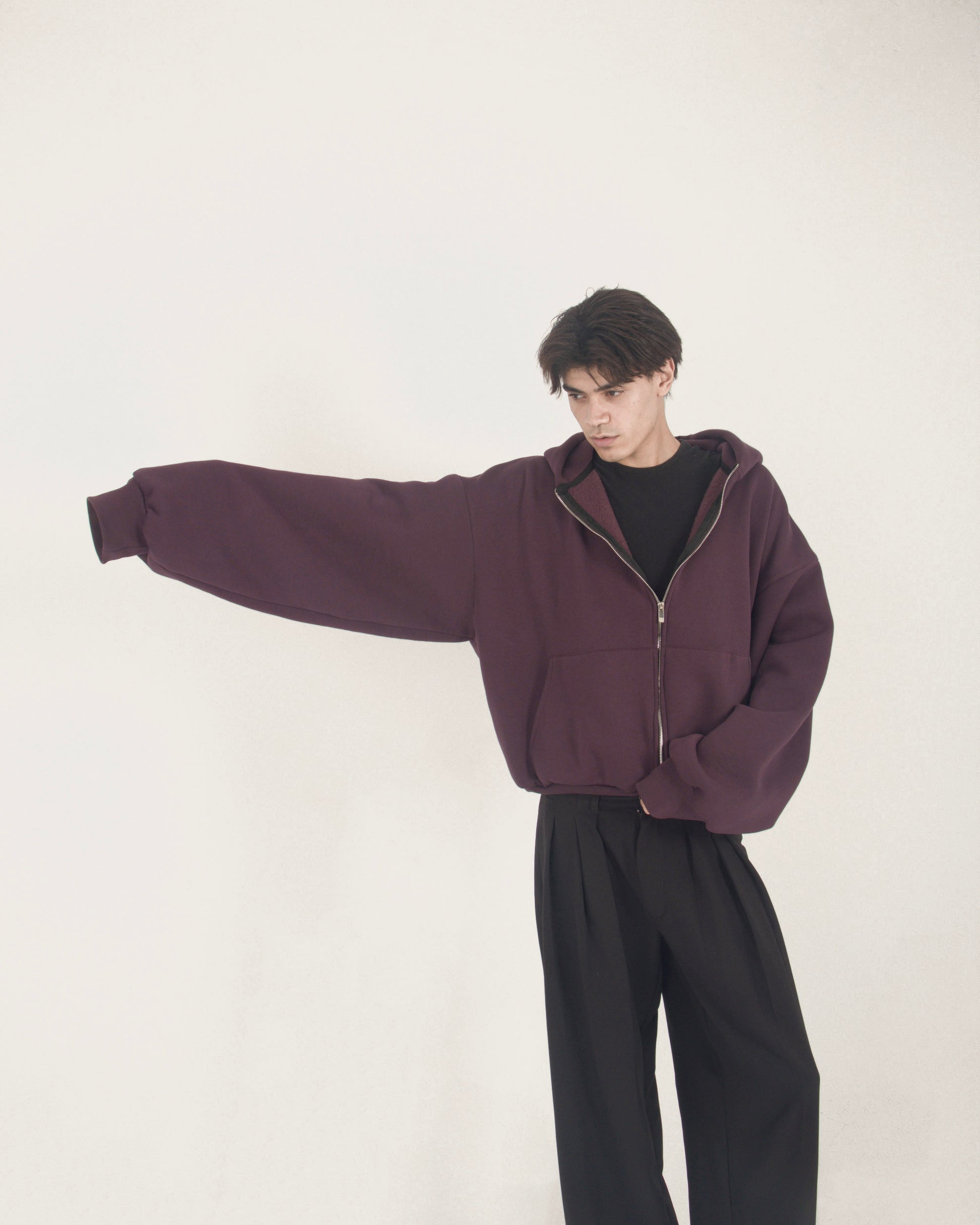 OVERSIZED FORM WITH A STRUCTURED VOLUME. COMES IN DARK PURPLE.