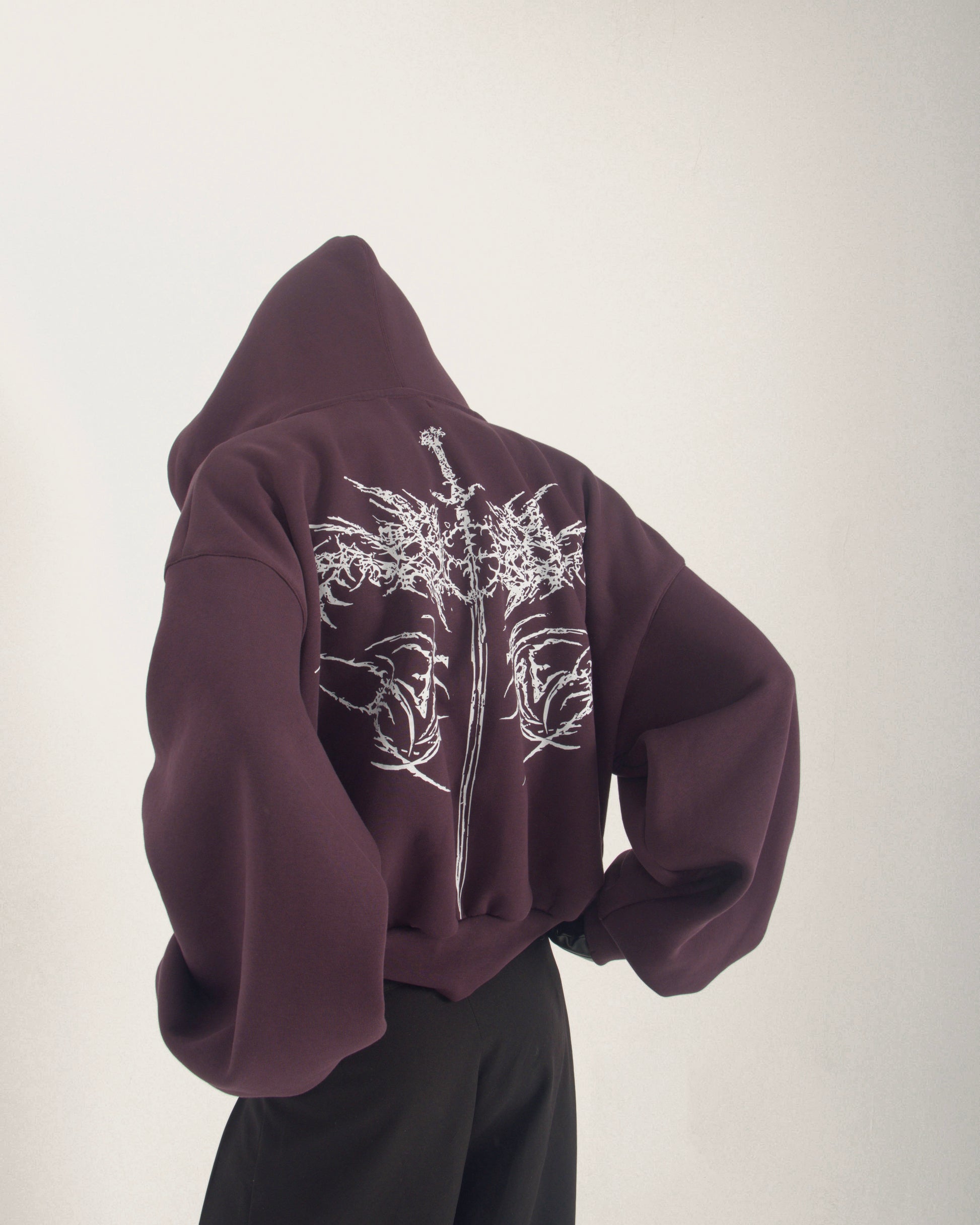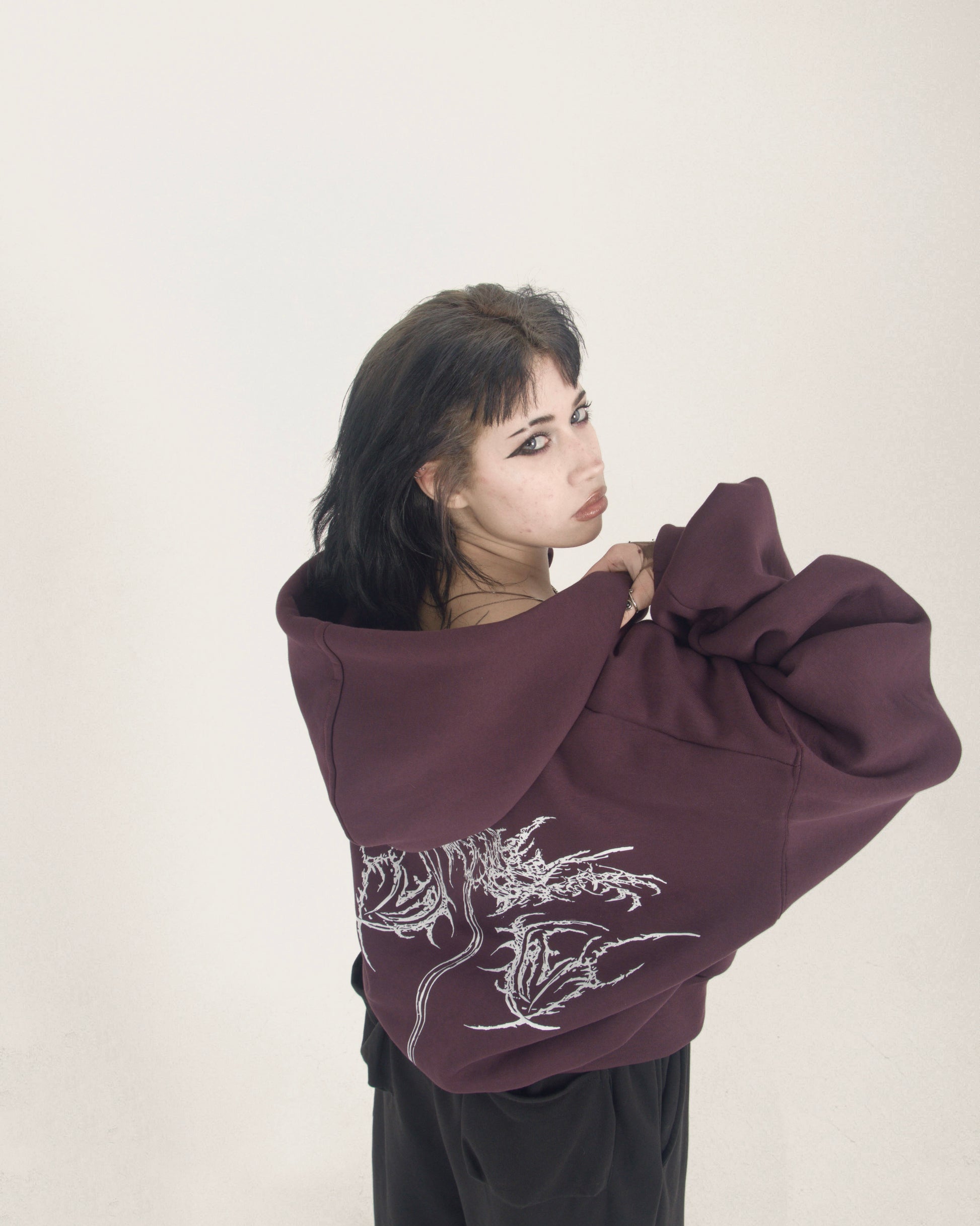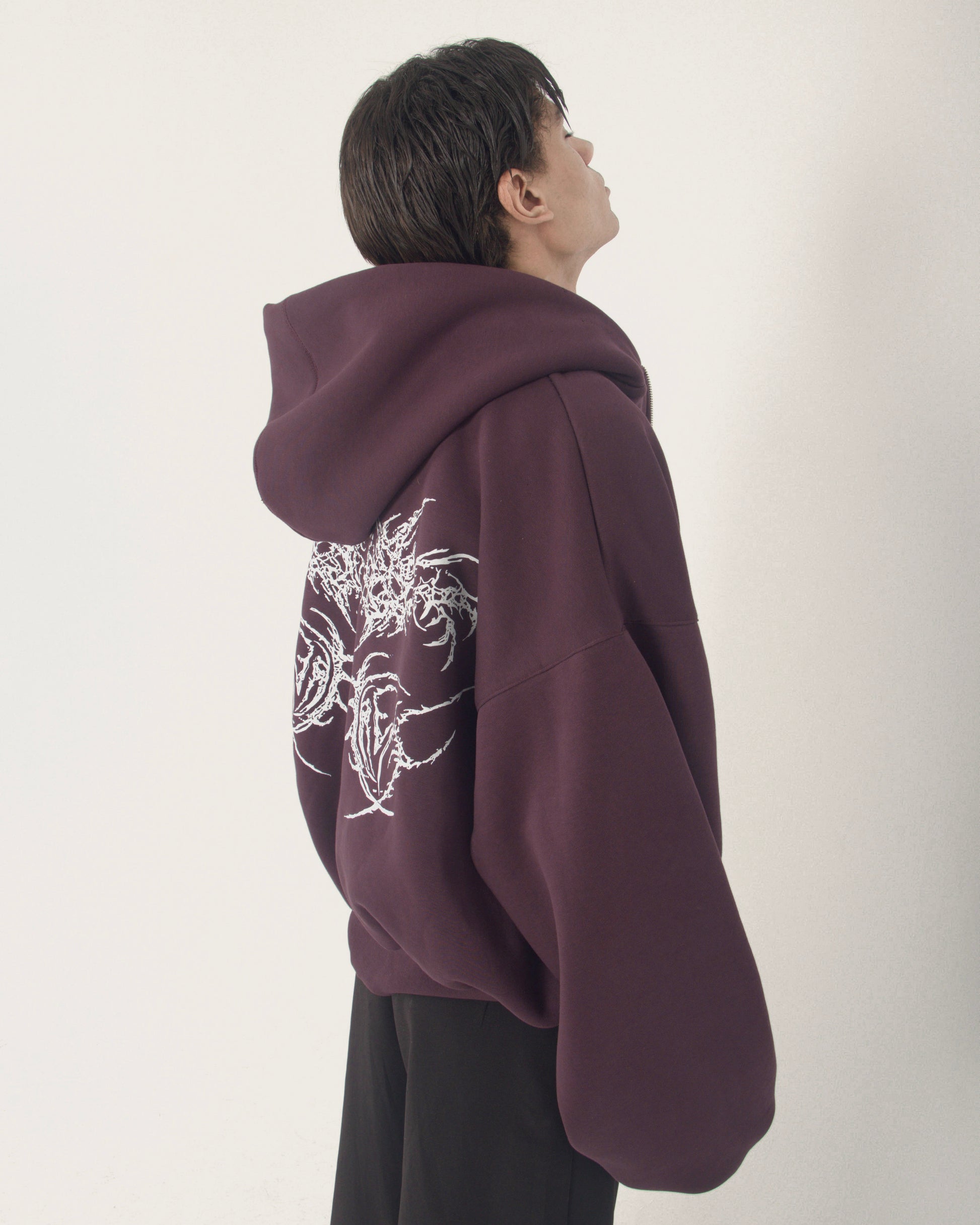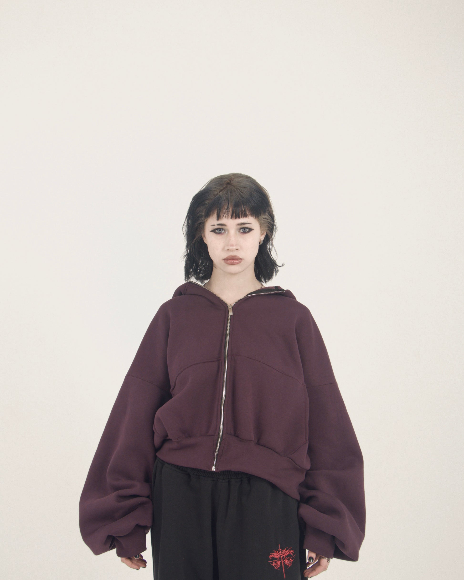 OVERSIZED FORM WITH A STRUCTURED VOLUME. COMES IN DARK PURPLE.